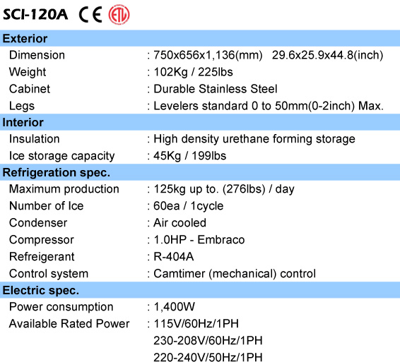 - Produces up to 125kg (275.6lbs) of ice in 24hours.